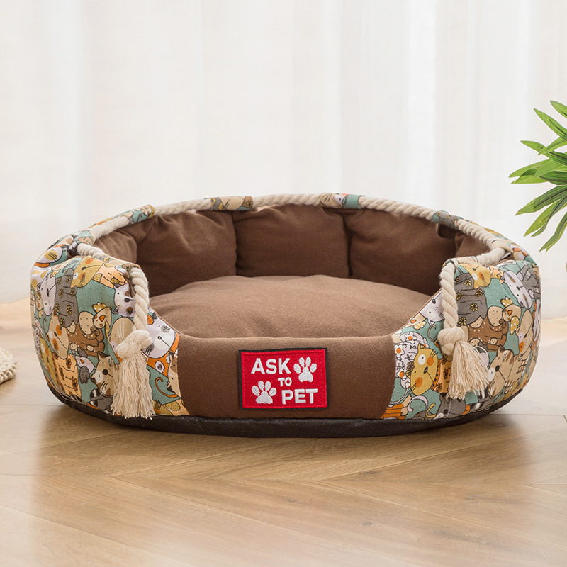 Thick Plush Winter Warm Printed Canvas Pet Nest